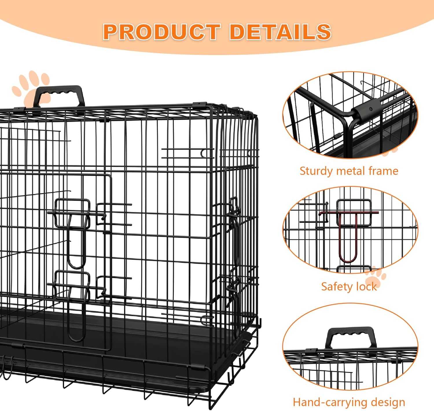 - 【Durable & Safe Construction】 Crafted from high-strength, rust-resistant metal with a protective black coating, this dog crate resists corrosion, fading, and wear. Every edge is smoothly finished for safety, ensuring no sharp corners—perfect for training, resting, or playtime.
